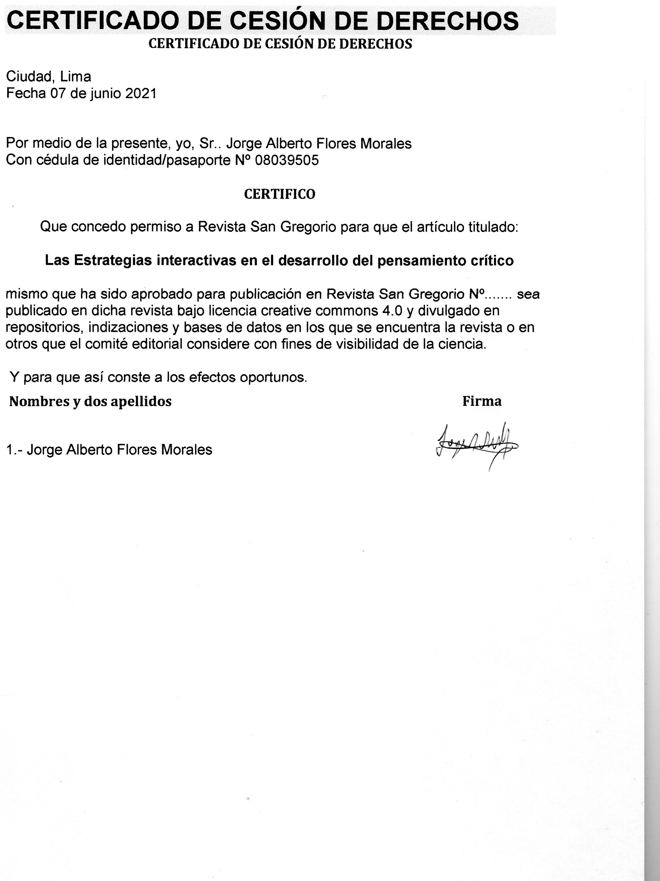 Flores Morales, J. A. (2021). Las estrategias interactivas en el desarrollo del pensamiento crítico. Revista San Gregorio, 48, 186-197. https://doi.org/10.36097/rsan.v0i48.1843
